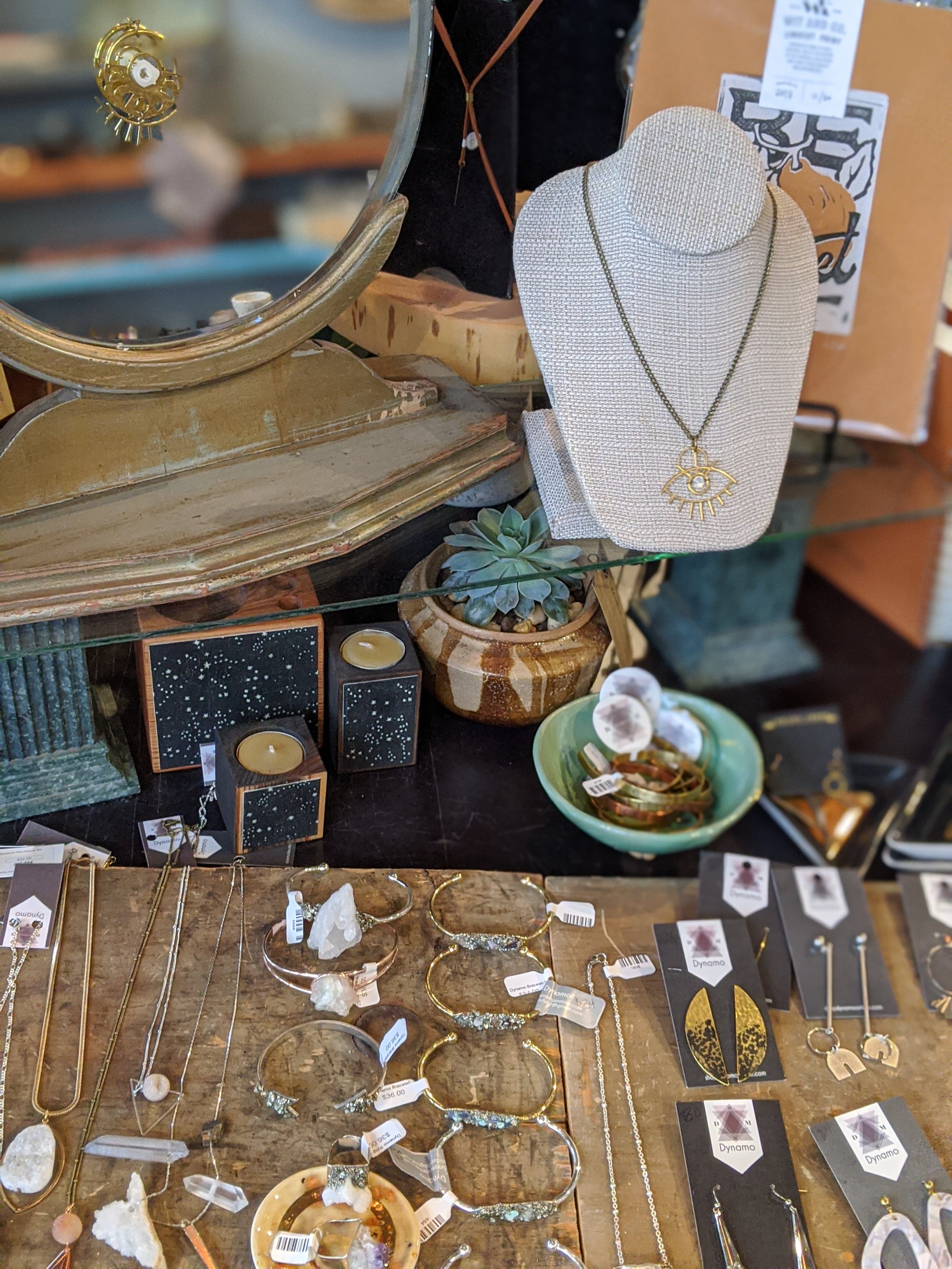 Imagine walking into Target and shopping for a piece of jewelry. You’re likely to find dozens of similar looking pieces that happen to be the trend of the moment. Chances are there are about 6- 10 different items to choose from and all of them are mass produced from a machine. Now imagine walking into a local boutique that smells of hand poured candles, and has a unique front display window featuring handmade items by local artisans. As you walk through the store you find a whimsical display of all handmade necklaces on different size busts, draped elegantly on mirrored trays, rings propped up on raw crystals. The two stores offer jewelry but have two very different ways of selling you the pieces.